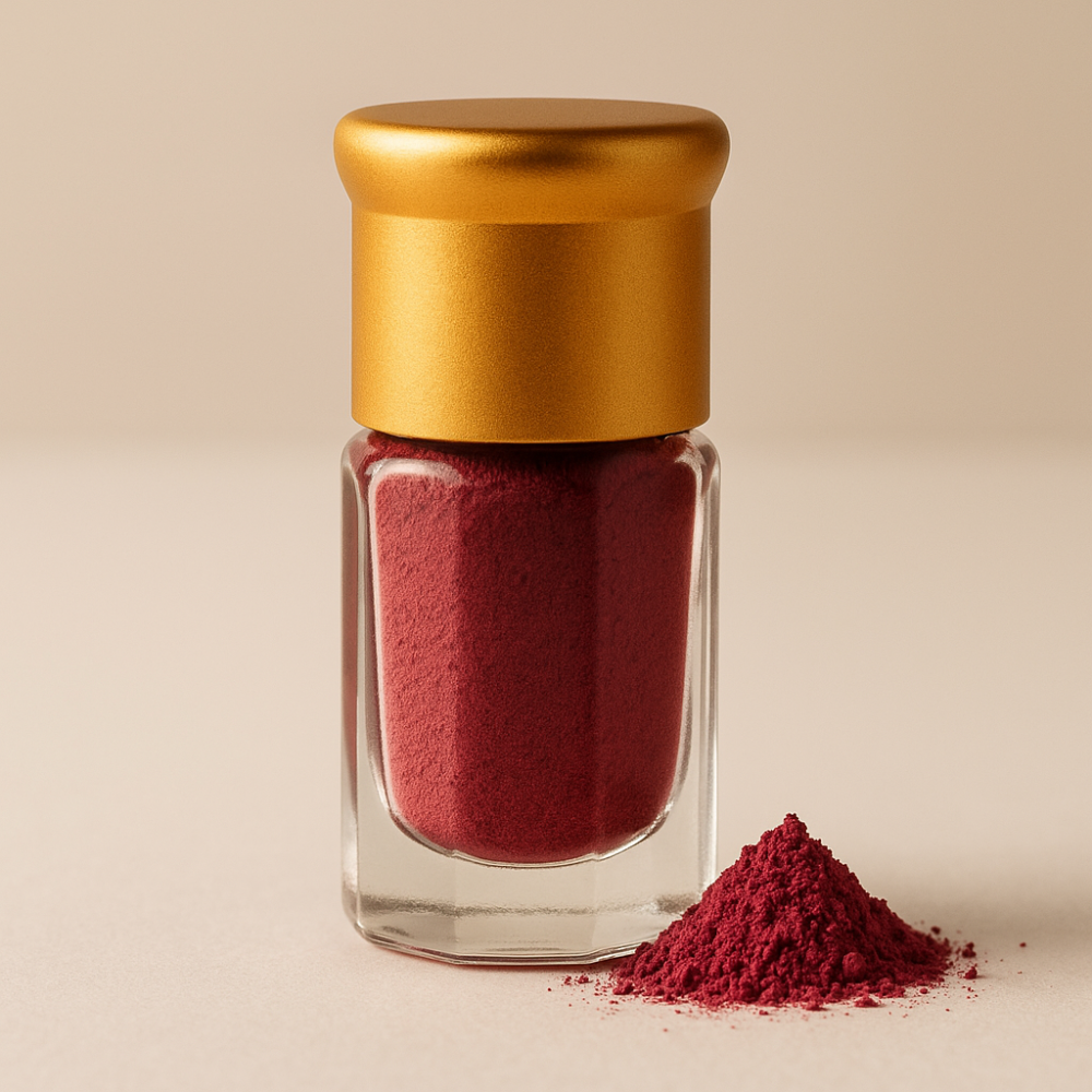 ✅ القرمز النقي – بودرة طبيعية بلون وردي غامق